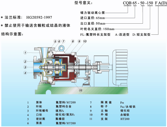CQB型磁力泵是化工流程中杜絕跑、冒、滴、漏現象,消除環(huán)境污染,創(chuàng)造“無泄漏車間”、“無泄漏工廠”,實現安全、文明生產的理想用泵。