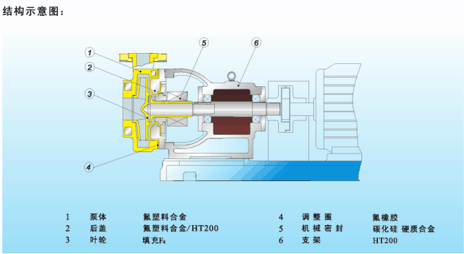 我公司生產(chǎn)的FSB型氟塑料合金離心泵,可在-80—120度溫度的條件下,長(zhǎng)期輸送任意濃度的各種酸、堿、鹽、強(qiáng)氧化劑等多種腐蝕性介質(zhì),其殼體及過(guò)流部分全部用F46氟合金制成,它集多種氟塑料之優(yōu)點(diǎn),具有特強(qiáng)的耐腐蝕性,并具有機(jī)械強(qiáng)度高,不老化,無(wú)毒素分解優(yōu)點(diǎn)。該產(chǎn)品機(jī)械強(qiáng)度高,設(shè)計(jì)合理,結(jié)構(gòu)緊湊,性能可靠,使用維修方便,流道光滑效率高,節(jié)約能源,榮獲“國(guó)家科學(xué)技術(shù)獎(jiǎng)”。