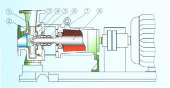 IHF氟塑料離心泵采用目前最為先進的外裝式四氟波紋管機械密封,其特點是能補償泵軸的徑向跳動,單端面密封外裝式、易裝卸、工作狀態(tài)直觀、耐腐耐磨密封性能好、擁有多層保護,延長了機封使用壽命;對于輸送含雜質(zhì)顆粒腐蝕性介質(zhì)時,可配用無冷卻水單端面硬對硬(碳化硅對碳化硅)機械密封,強堿與氫氟酸等特殊腐蝕性介質(zhì)配用無壓燒結(jié)碳化硅密封;用戶選型時需考慮到介質(zhì)中的固體含量及介質(zhì)特殊腐蝕性.